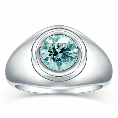 2 Ct Vs1 Blue Round Real Moissanite Engagement Men's Ring Sterling Silver Size 9