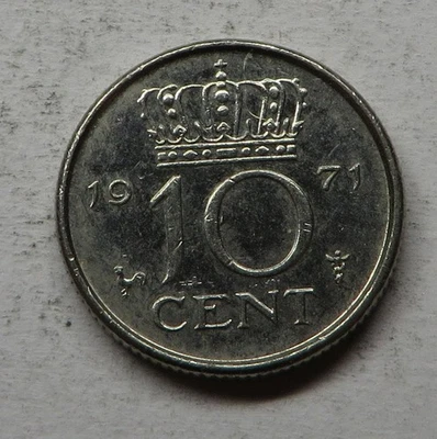 Netherlands 10 Cents 1971 Nickel KM#182 UNC