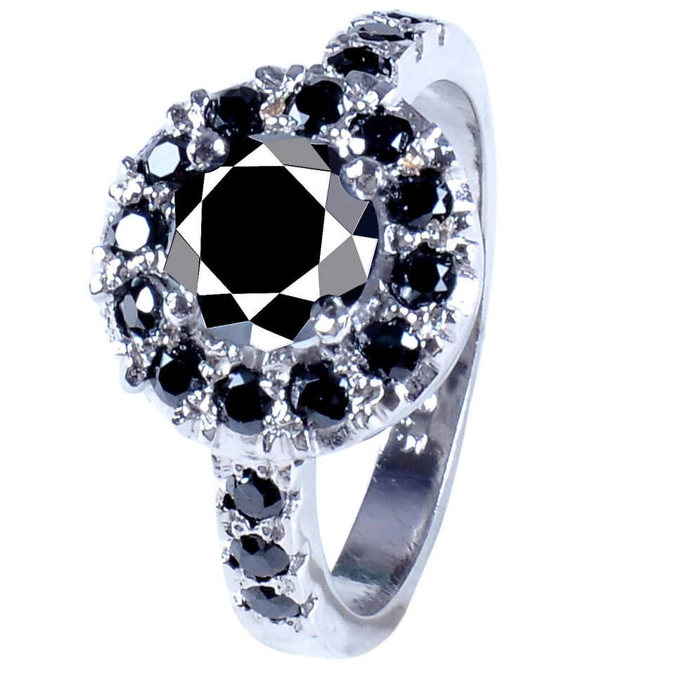 3 Ct Black Color Round Cut Moissanite Engagement Ring 925 Sterling Silver Size 9