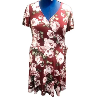 Women's Large Burgundy Floral Midi Fashion Sun Dress