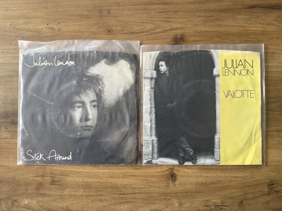JULIAN LENNON Lot Of 2 7” Vinyl Records ‘Stick Around’ + ‘Valotte’ Phil Ramone