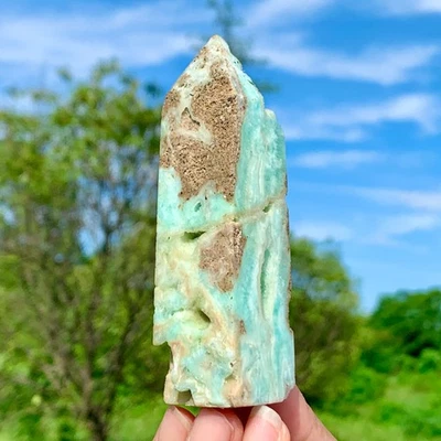 110G Natural Hemimorphite Obelisk Quartz Crystal Point Tower Home Decor healing