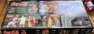 Coca Cola 3 Jigsaw Puzzles In 1 Box 100 500 1000 Pieces #91730 Vtg 1993 Complete
