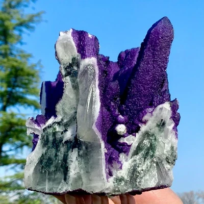 5.92LB Natural White Candle Calcite Wrapped In Purple Fluorite Crystal Specimen