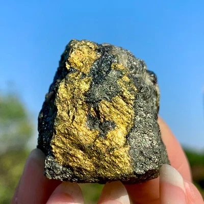 84G Natural Golden Chalcopyrite Calcite Crystal Cluster Rare Mineral Specimen