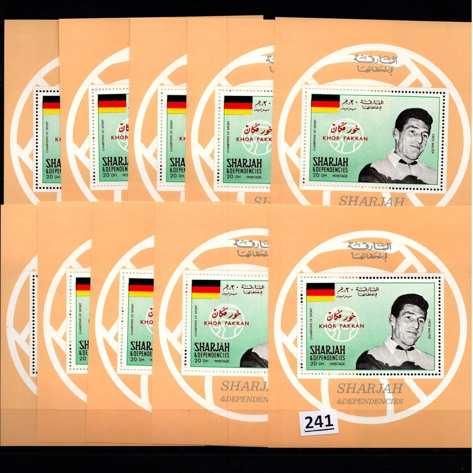 10X KHOR FAKKAN - MNH - SHARJAH - SOCCER - FLAGS - OVERPRINT - CHAMPIONS