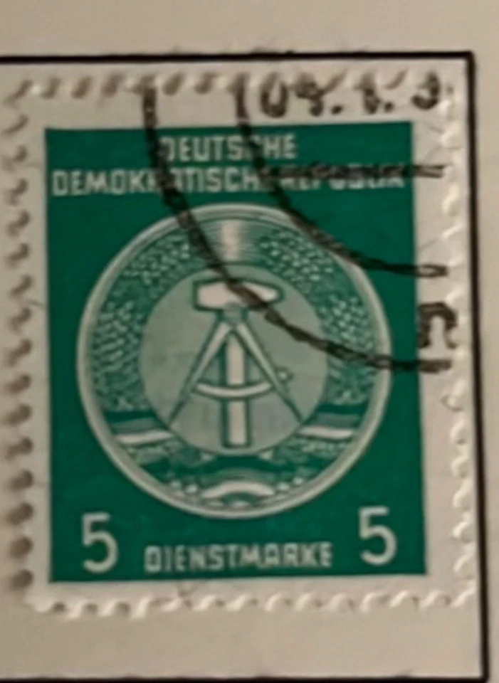 DDR Dienstmarken 1954, Staatswappen m. Zirkelbogen n. rechts, 5 Pfg, gestempelt
