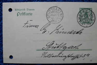 Altdeutschland Königreich Bayern alte Postkarte von 1908 Amberg - Stuttgart