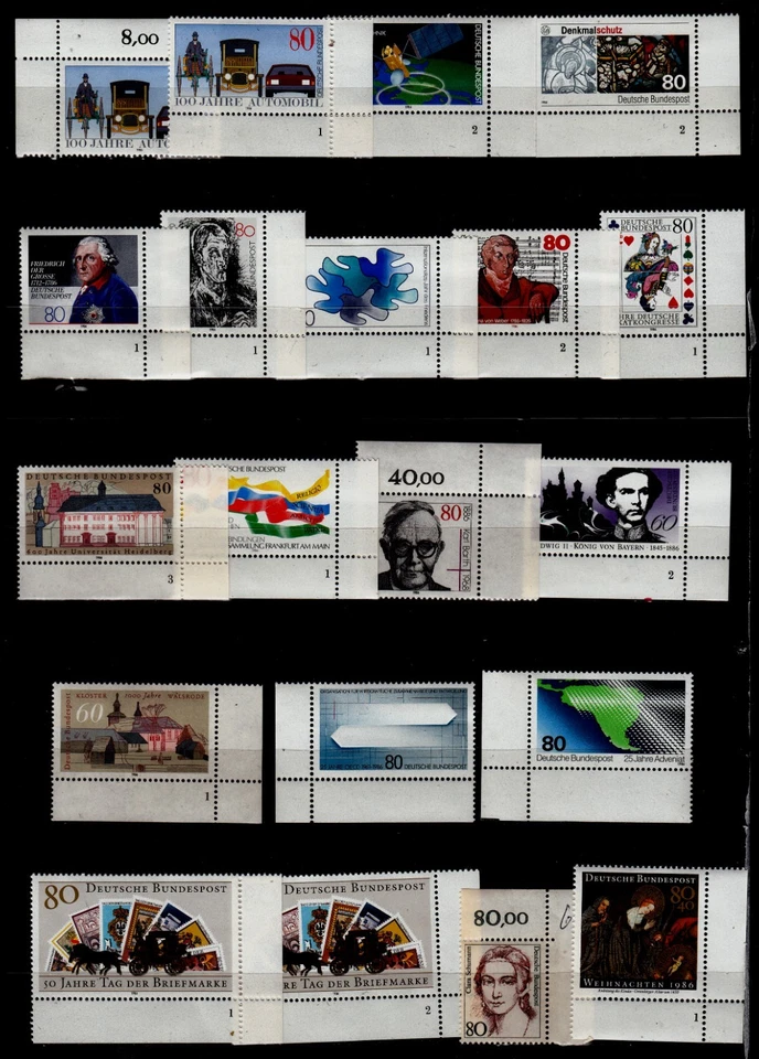 BRD 1986: aus 1986 20 versch. Ecken postfrisch, nicht gefaltet, siehe Bild