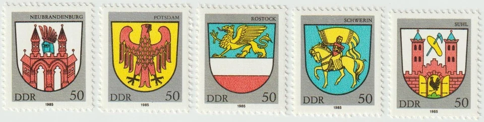 DDR-Briefmarken: „Stadtwappen (III)“, 1985, Mi.2934-38.#156