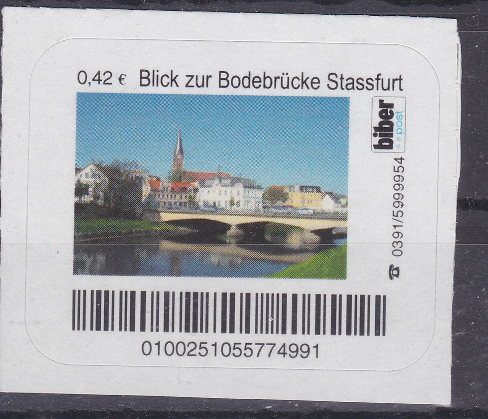 Privatpost. Biberpost. Blick zur Bodebrücke Staßfurt, postfrisch