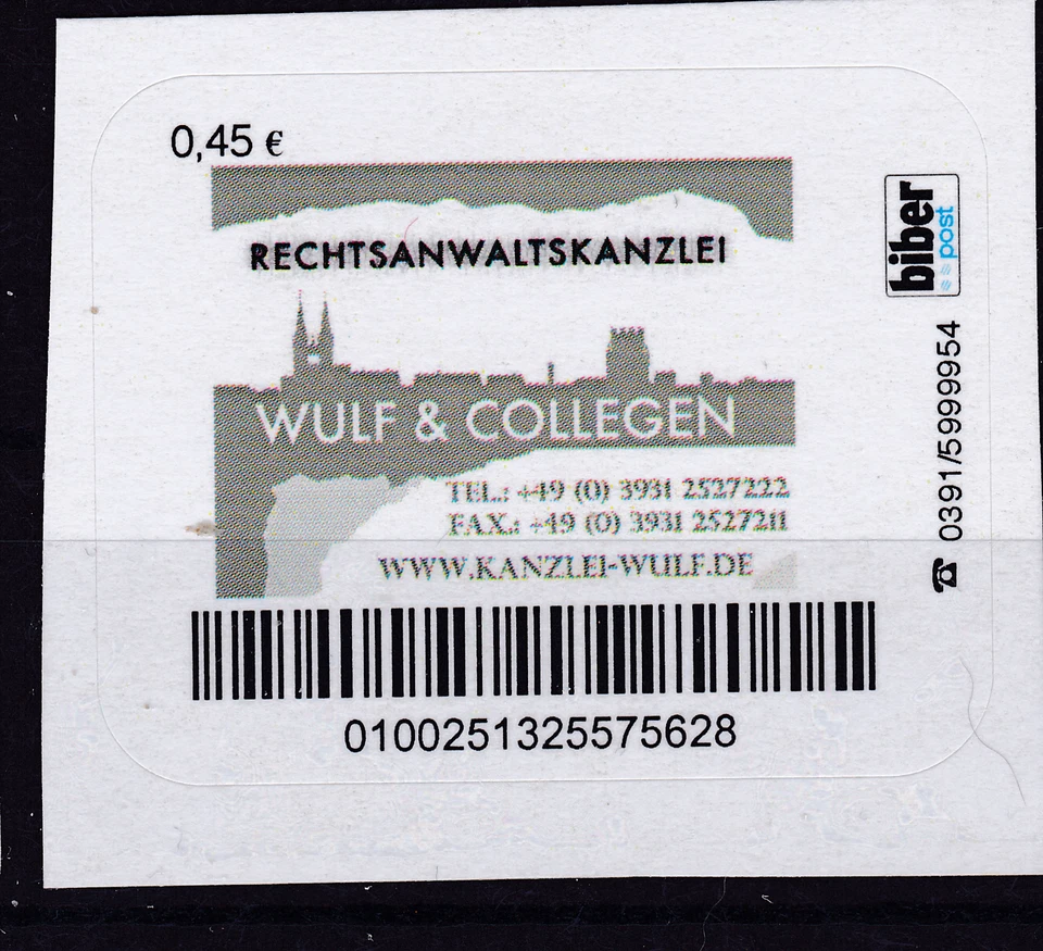 Privatpost. Biberpost. Rechtsanwalt Wulf & Collegen, postfrisch