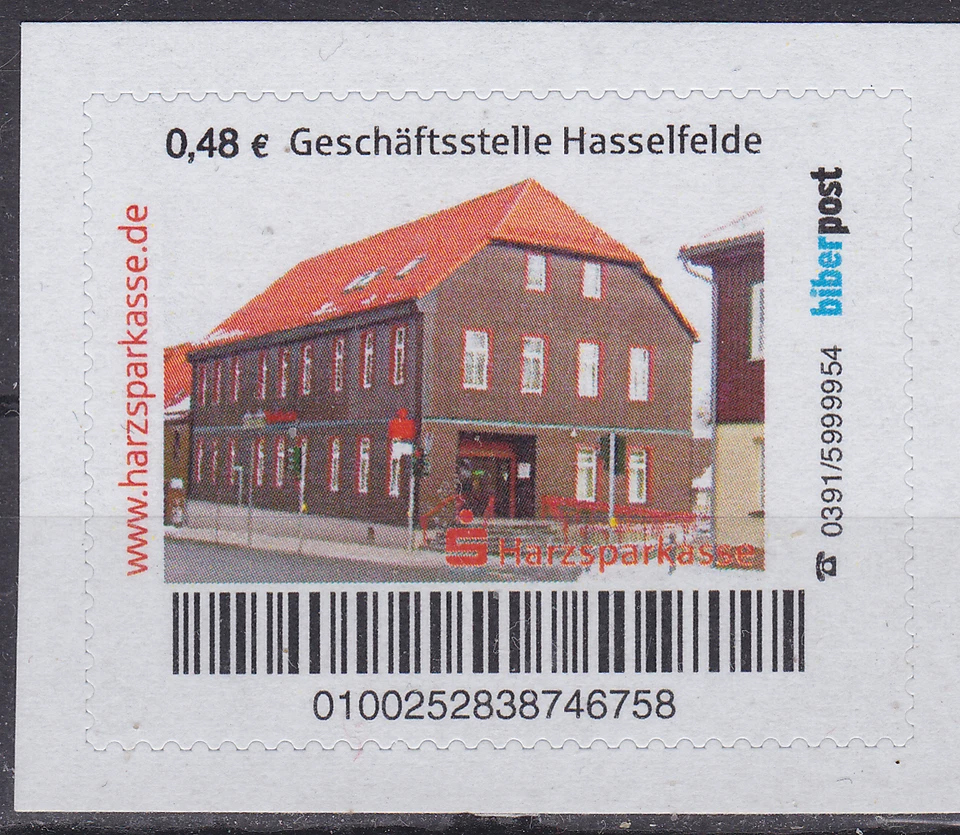 Privatpost. Biber Post. Harzsparkasse Hasselfelde, postfrisch