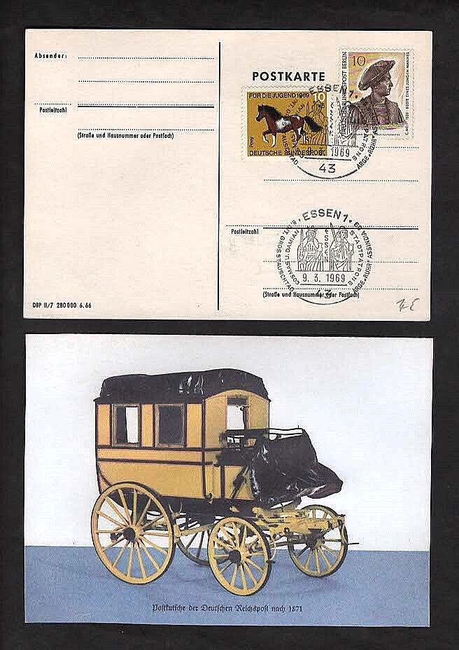 Postkarte /Fotokarte " Pony/C.Meit " ; Mi.-Nr: 578, 303 ; SSt: 43 Essen, 9.3.69