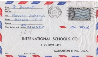 Bahamas - 1954 Queen Elizabeth II Definitives (Paradise Beach) Air Mail Cover