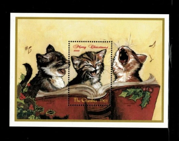 VINTAGE CLASSICS- Gambia 1998- Singing Cats- Souvenir Stamp sheet Scott 2095 MNH