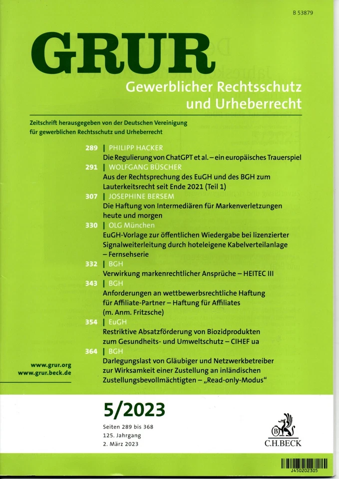 März 2023: GRUR. Gewerblicher Rechtsschutz und Urheberrecht.