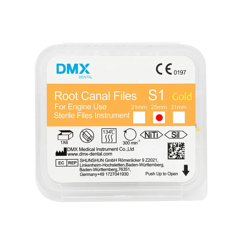 6PC Endodontic Dental Endo NITI Files S1 25mm Gold Taper Root Canal Rotary Files