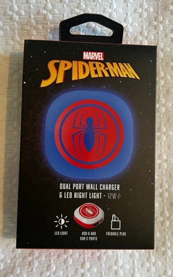Brand New: Marvel Spider-Man Dual Port Wall Charger & LED Night Light