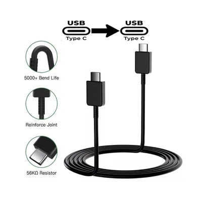 Fast Type-C Charging USB Cable Black For Samsung Galaxy S22 S23 24 Plus Ultra