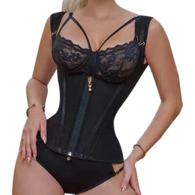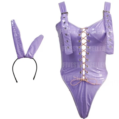 Women Cosplay Outfit Sexy Lingerie Set PU Leather Bodysuit Teddy (small size)