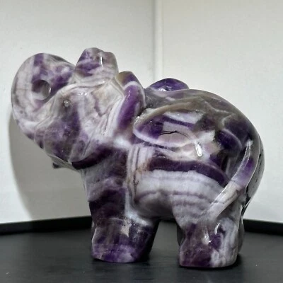 288G Natural Dream Amethyst Crystal Elephant Quartz Stone Carved Decor Healing