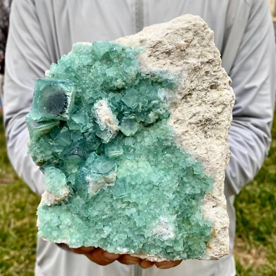 18.7LB Rare green Purple cubic fluorite mineral crystal sample/Zhejiang, China