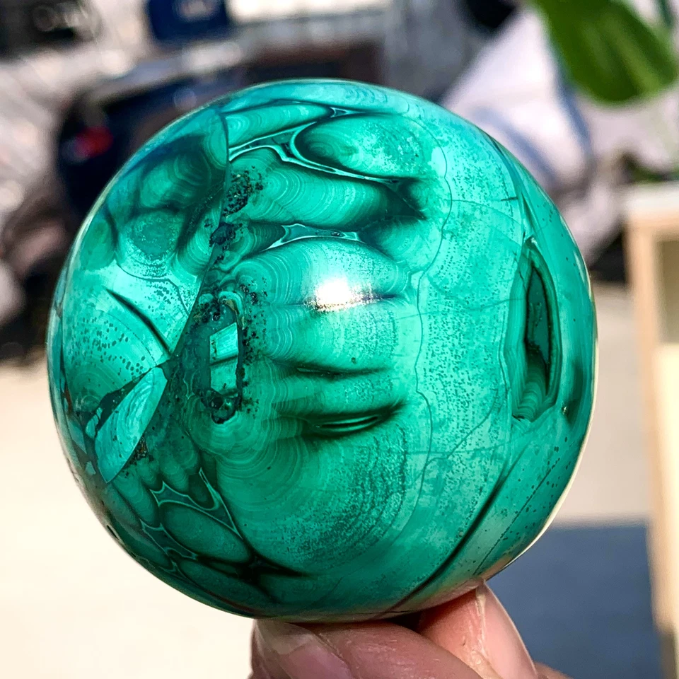 396G Natural glossy Malachite ball transparent cluster rough mineral sample
