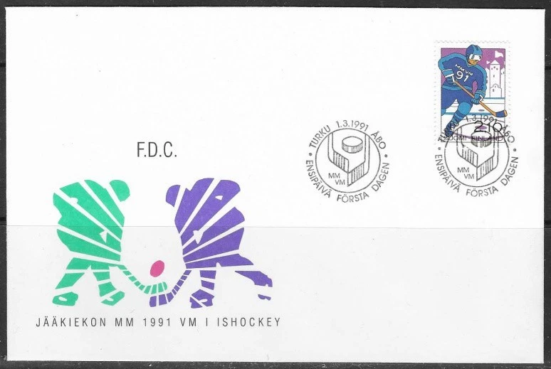Finland 1991 Sport, Ice Hockey Championships, Player, First Day Cover