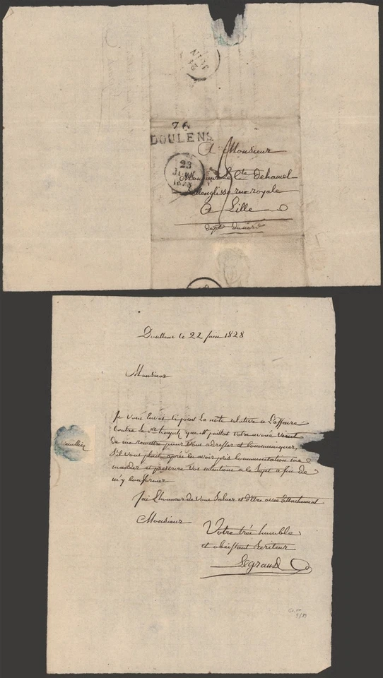 France 1824 - Stampless Letter Boulogne sur Mer G312
