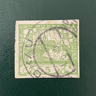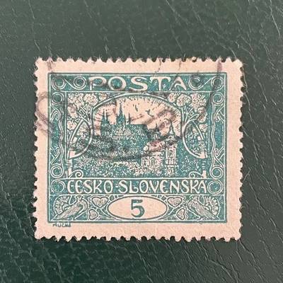 Czechoslovakia Stamp 1918-20 5h Hradcany Castle Perforated Alfons Mucha Design