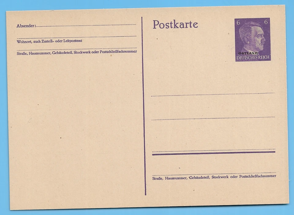 Germany WW2 Third Reich Ostland 1941 Adolf Hitler 6 Postcard Stamp WW2 ERA #68