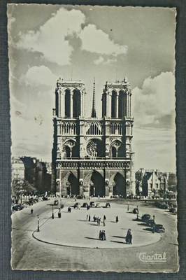 1952 Chantal Edition Post Card of Notre Dame Cathedral, Slogan Cancel Hoboken NJ