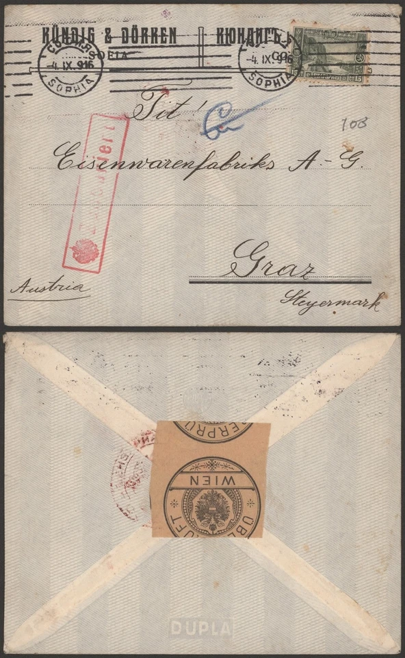 Bulgaria WWI 1916 - Cover to Austria - Censor E987