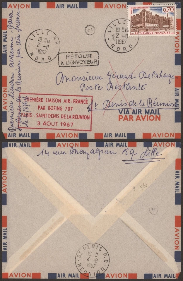 France 1967 - Air Mail Cover Flight to Reunion G528