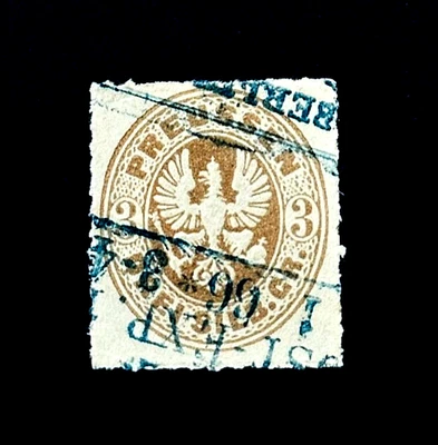 Old Germany PRUSSIA Stamp - 1862 Coat of Arms in Oval Sn 20 Used Blue Cancel