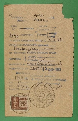 DR WHO 1982 ITALY VISA DOCUMENT WITH REVENUE R18636