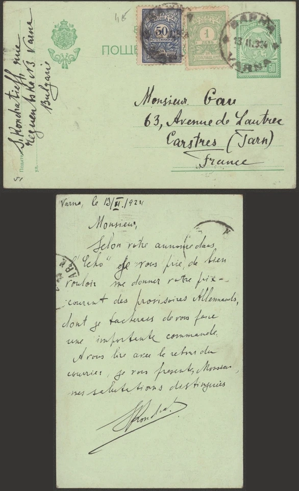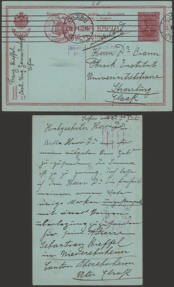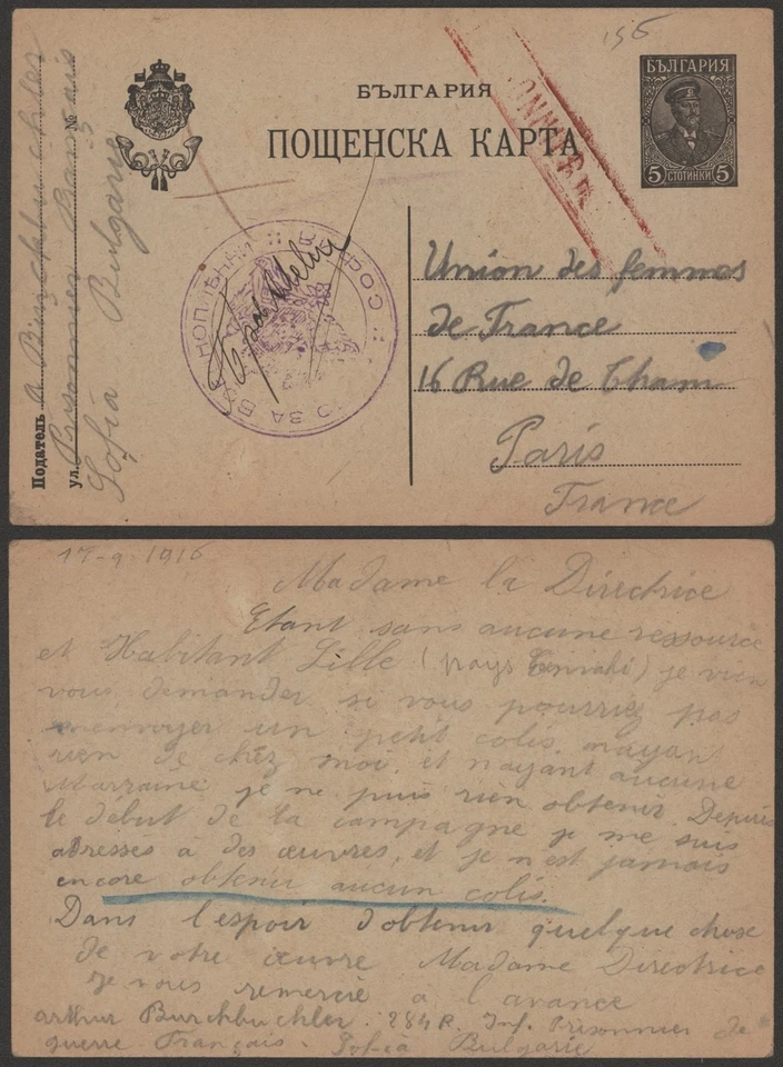 Bulgaria WWI 1916 - Postal Stationery to France - Censor E971
