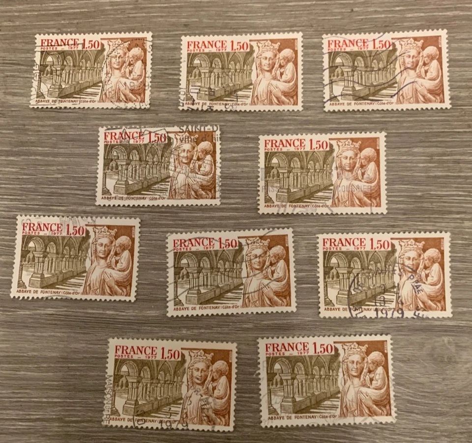 FRANCE 1977. TOURIST PUBLICITY SG2190 STATUE + CLOISTER,FONTENAY ABBEY, X 10