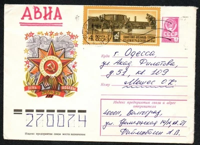 USSR Ukraine Odessa 1980s stationary cover WWII victory order