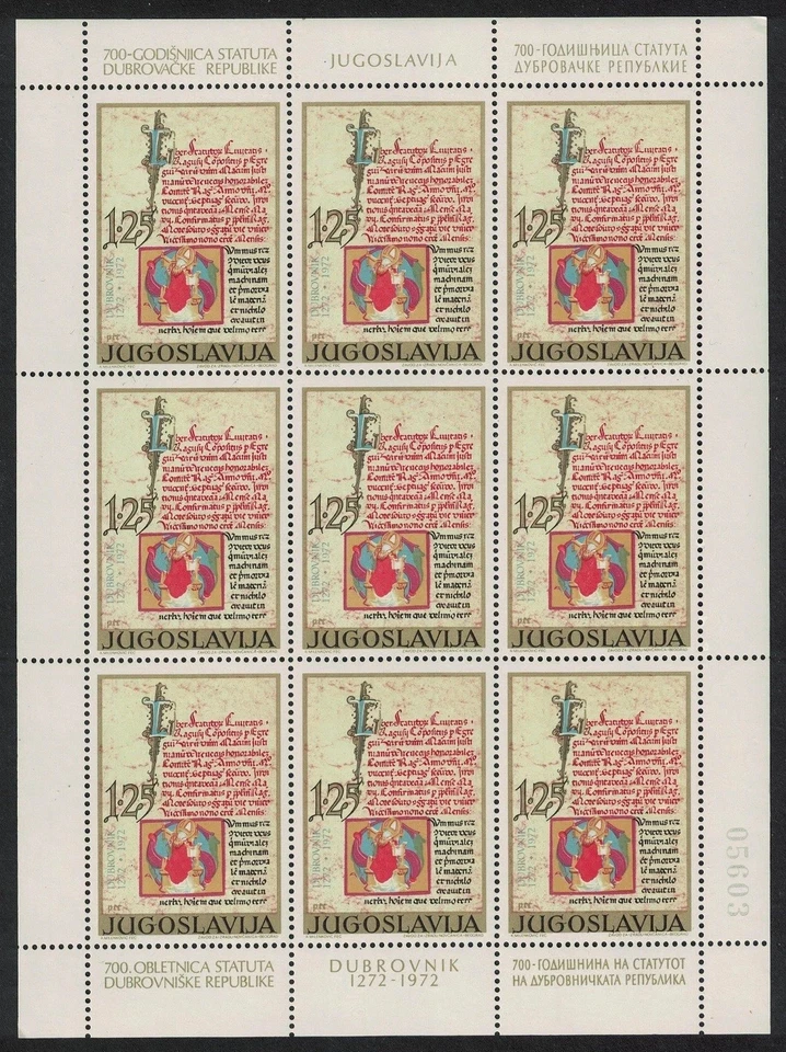 Yugoslavia 700th Anniversary of Dubrovnik Law Statutes Sheetlet 1972 MNH