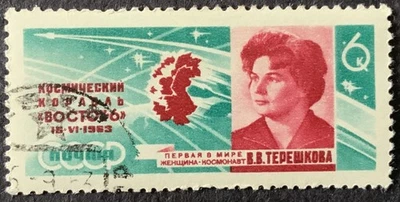 2 Stamps Cosmonaut Tereshkova (“Vostok-6”) “6,10k”1963 USSR Used