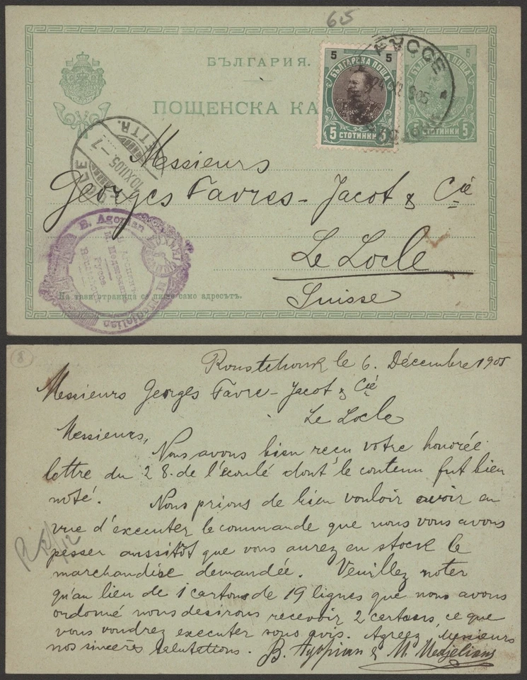 Bulgaria 1905 - Postal Stationery to Switzerland E955
