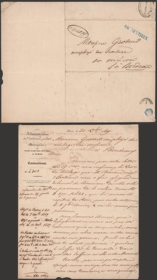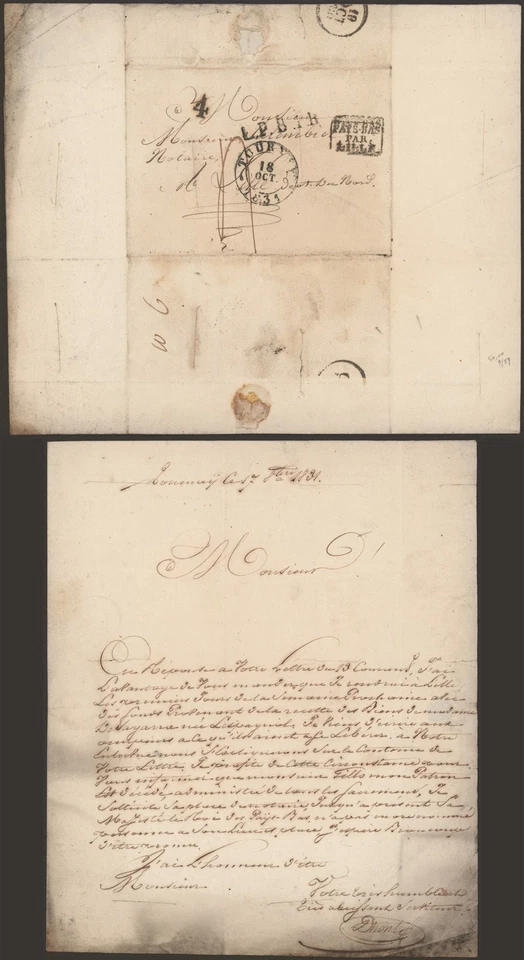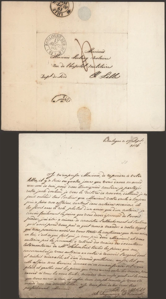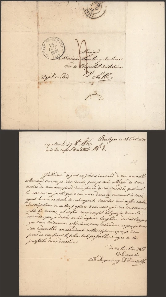 France 1836 - Stampless Letter Boulogne sur Mer G302