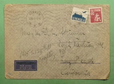 DR WHO 1954 NORWAY FIRST FLIGHT SAS OSLO TO LOS ANGELES CA USA w29402