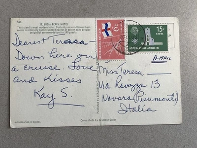 m) Air mail postcard Dutch Antilles 1965 to Italy Netherlands