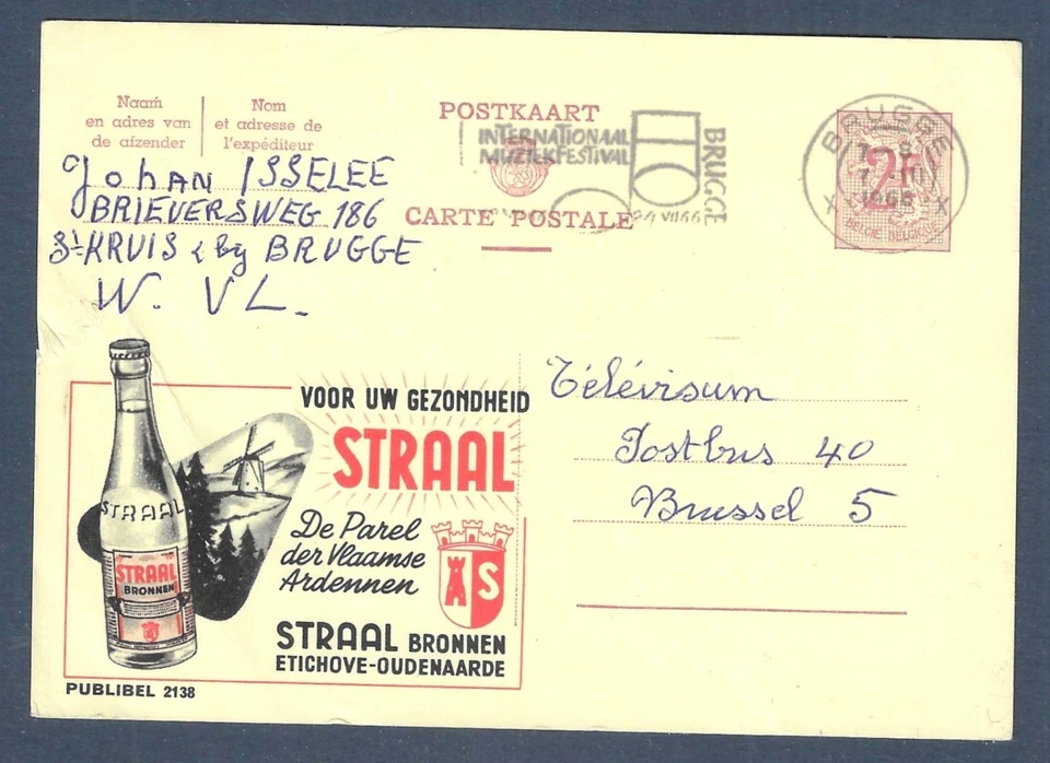1966 BELGIUM BELGIQUE STATIONERY POSTCARD PUBLIBEL BEVERAGE WATER