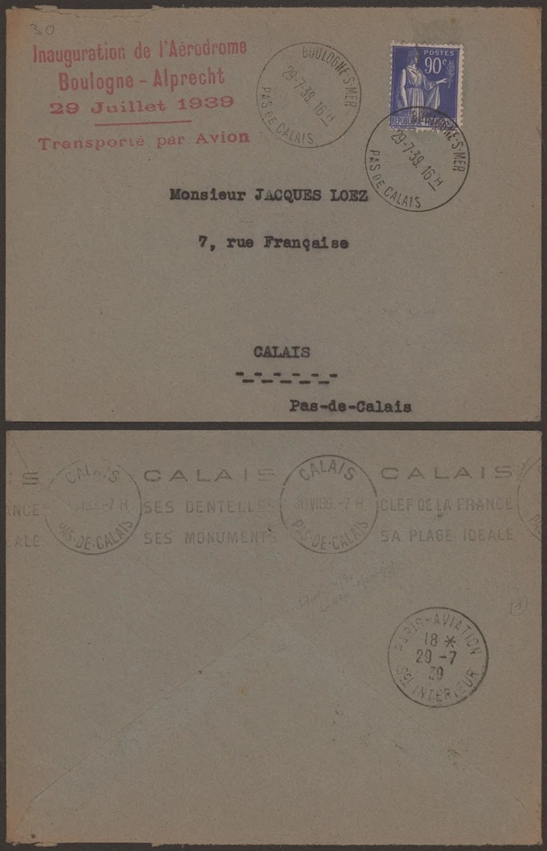 France 1939 - Commemorative Cover Boulogne Alprecht Airport G525
