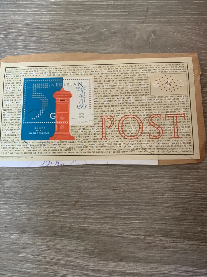 NETHERLANDS 1999 MINI SHEET. MS1965 BICENT OF NETHERLANDS POSTALSERVICE.