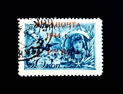 Russia USSR Stamp - 1944 WWII Pilot & Airplane Air Mail Overprint Sn C81 Used